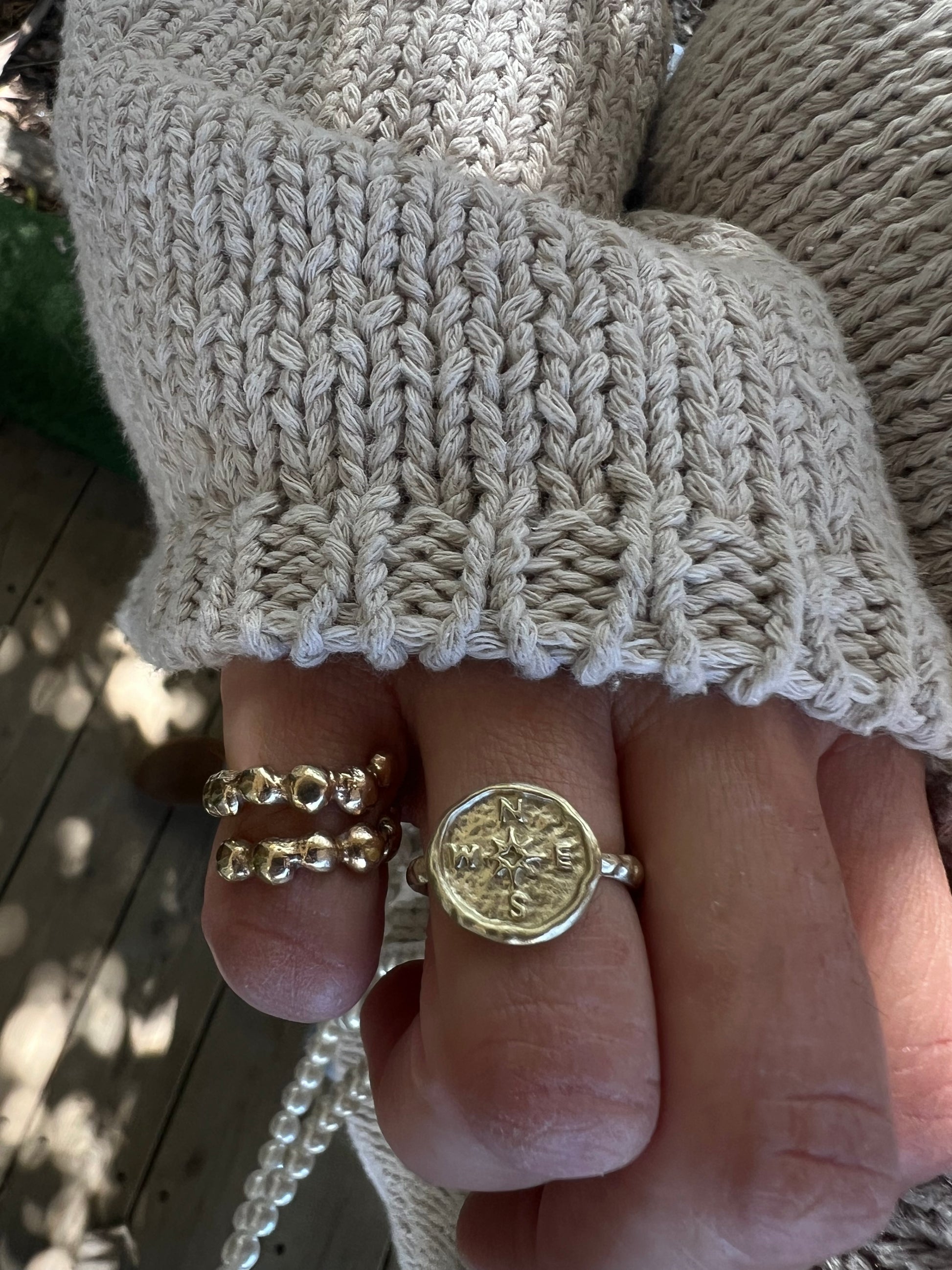 This Gold Compass ring serves as a daily reminder of your true path. Crafted with precision, this ring features a compass design, symbolizing guidance and direction. Stay true to yourself with this elegant and meaningful piece.