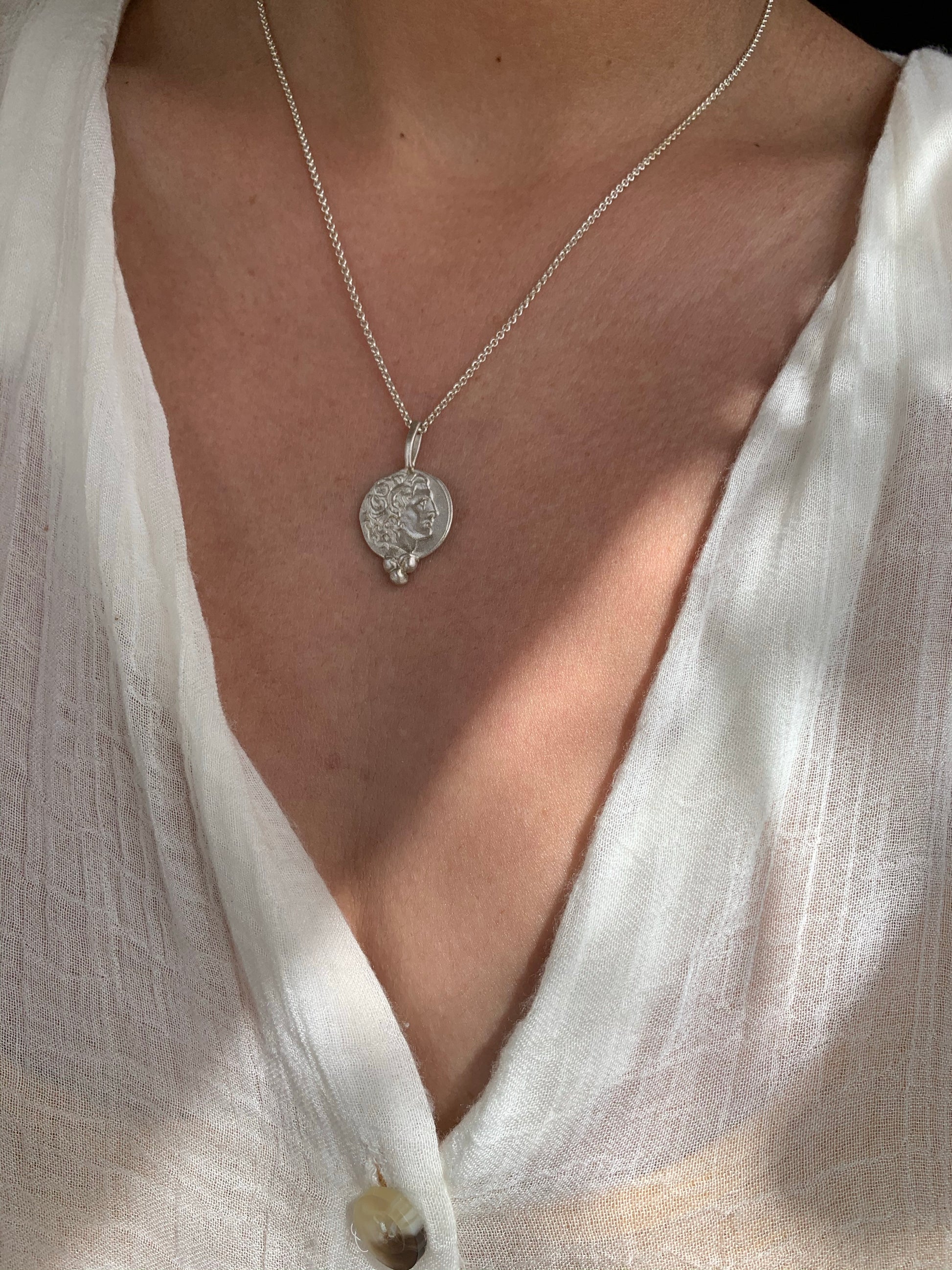 Small unique ancient coin "Tetradrachm" portraying Alexander the great wearing the head of the Nemean Lion as a helmet, on the reverse side zeus sits on his throne holding a scepter and an eagle.