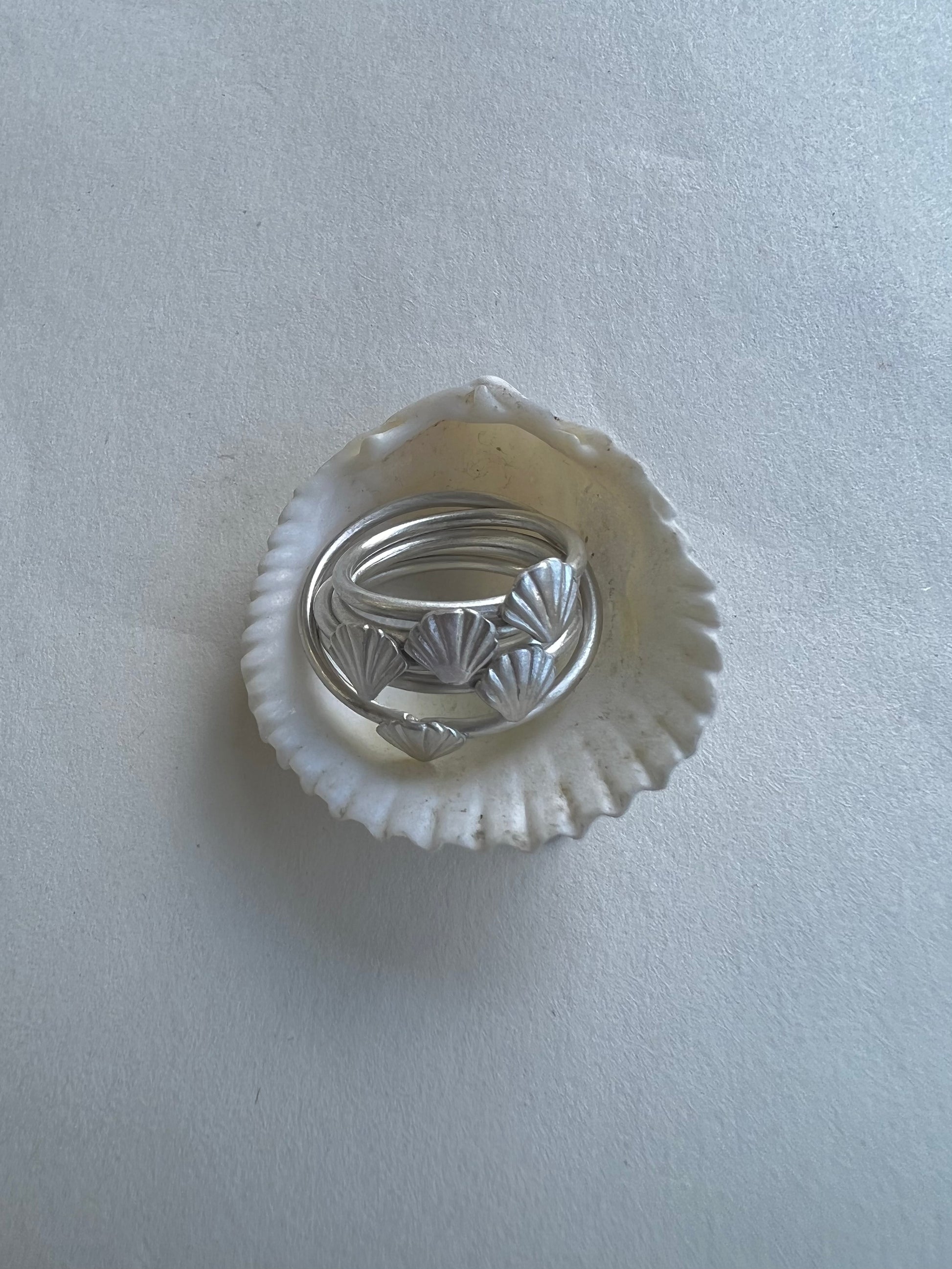 That silver seashell ring created for the Tiny Silver Stack Collection