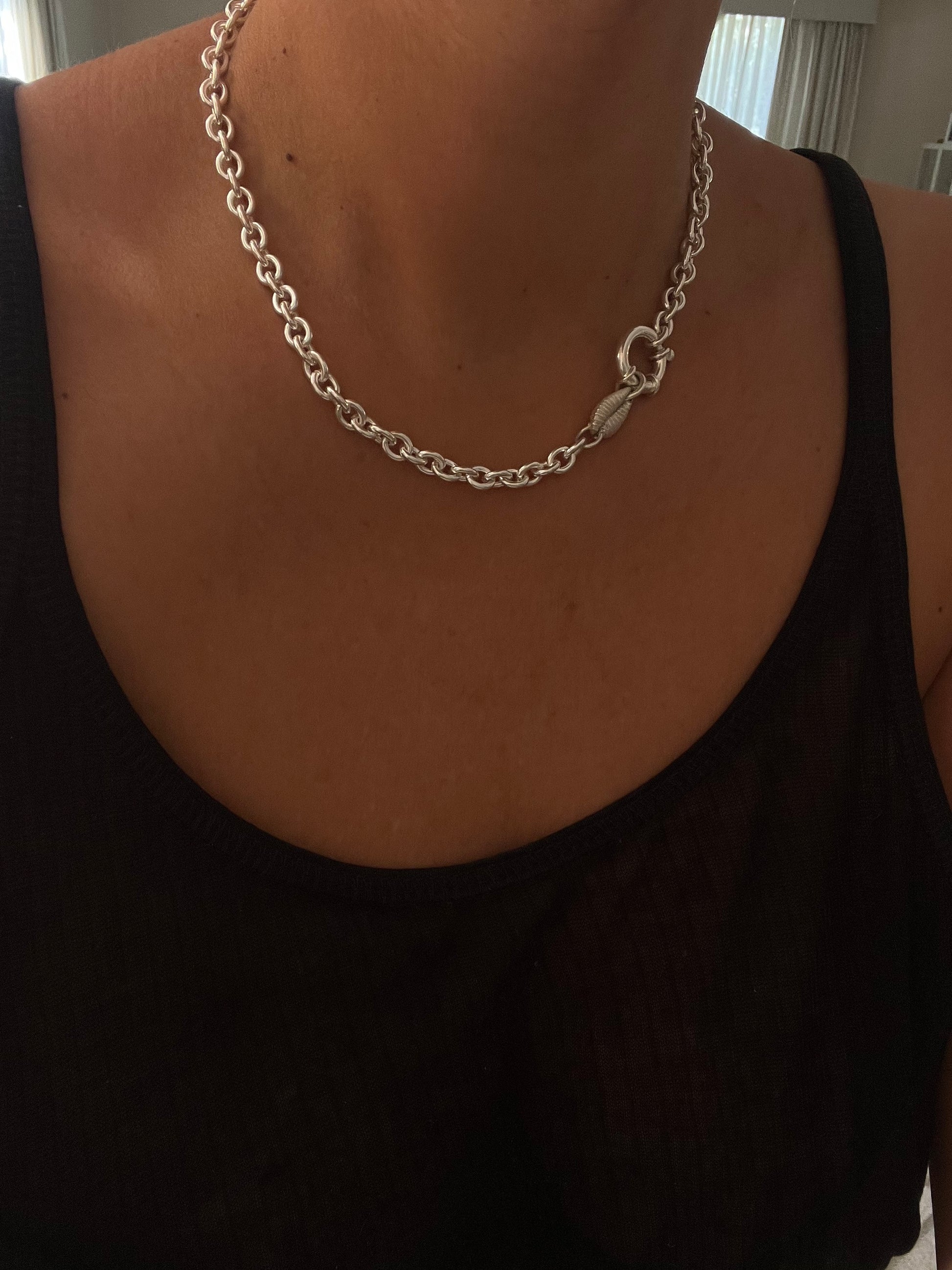 Add a touch of the sea to your style with our Kahoni Chain. Made with silver 925 and adorned with a beautiful kahoni cowrie shell, this chain will elevate any outfit. With its unique and stylish design, it's the perfect accessory for any occasion. Handcrafted for the highest quality.