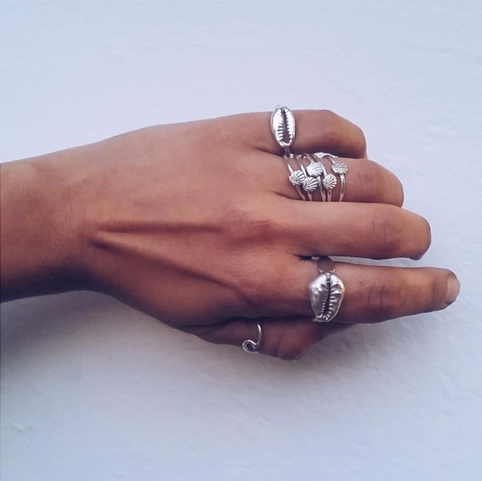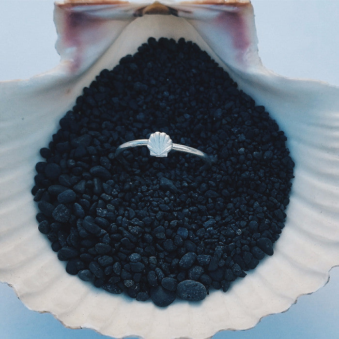 A silver seashell ring created for the Tiny Silver Stack Collection...