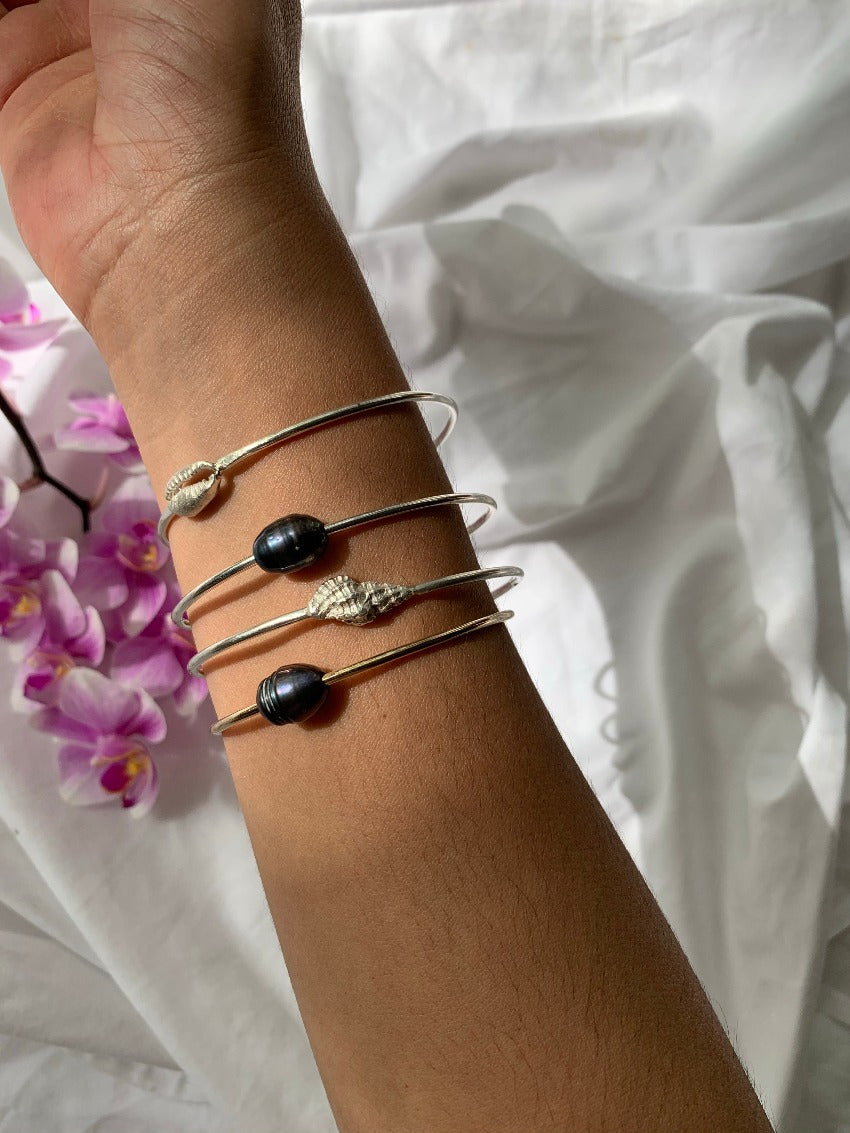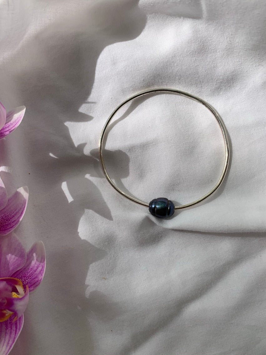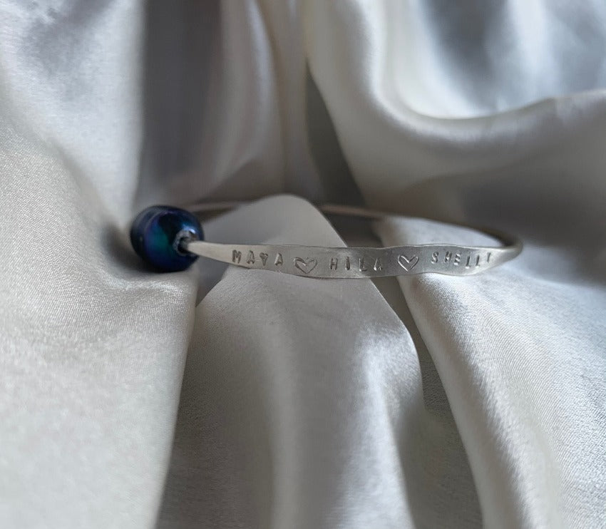 The Mama Bangle is here to stay! Keep it close and flaunt it with style - you won't be able to get enough of this classic silver pearl bangle. Shine on, mama! :-)