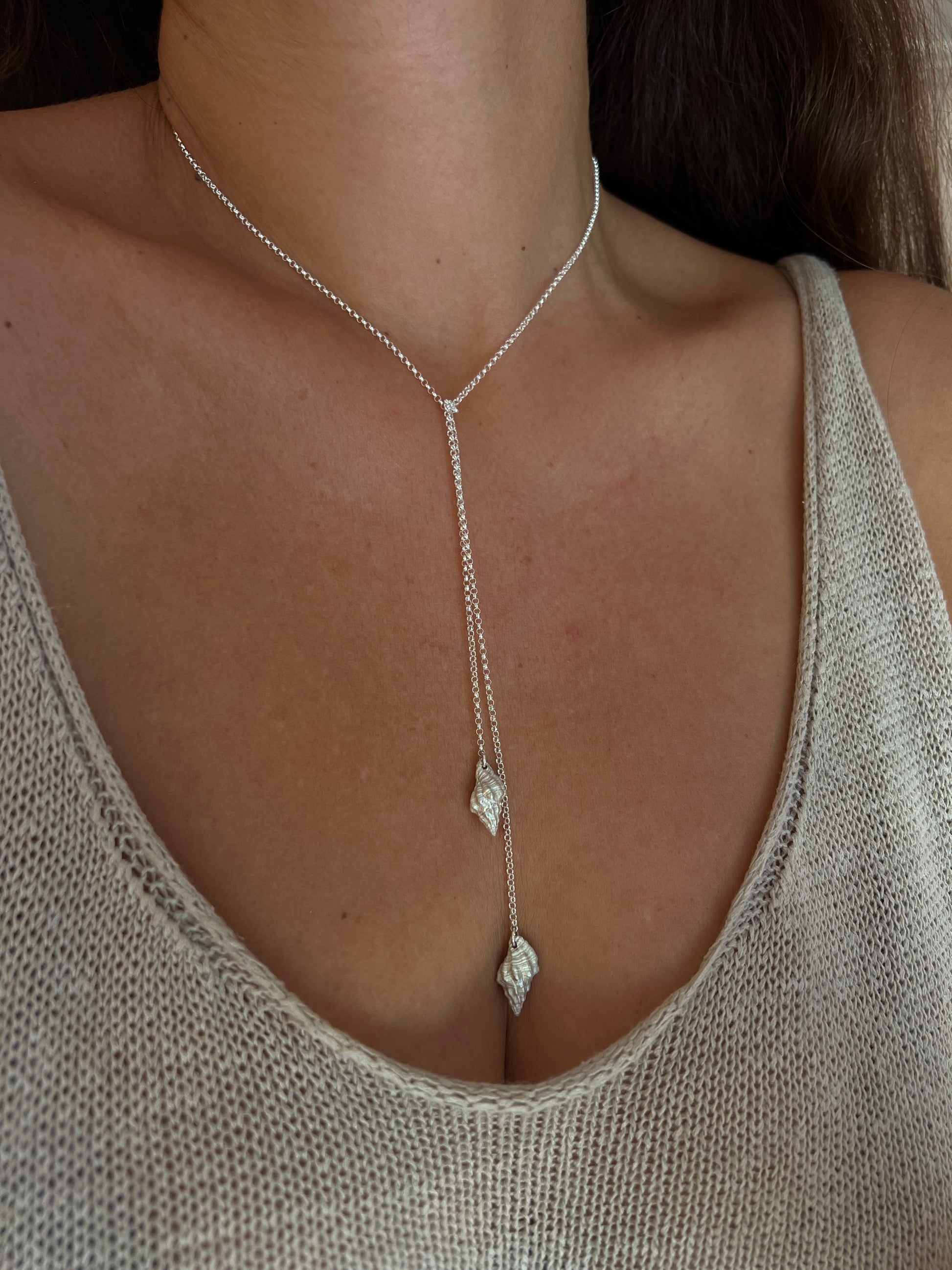 Discover the beauty and elegance of the Mykonos necklace. Adorned with a stunning double conch Neptune seashell, this necklace not only adds a touch of sophistication to your outfit, but also enhances your cleavage for a flattering look. Elevate your style with this must-have accessory.