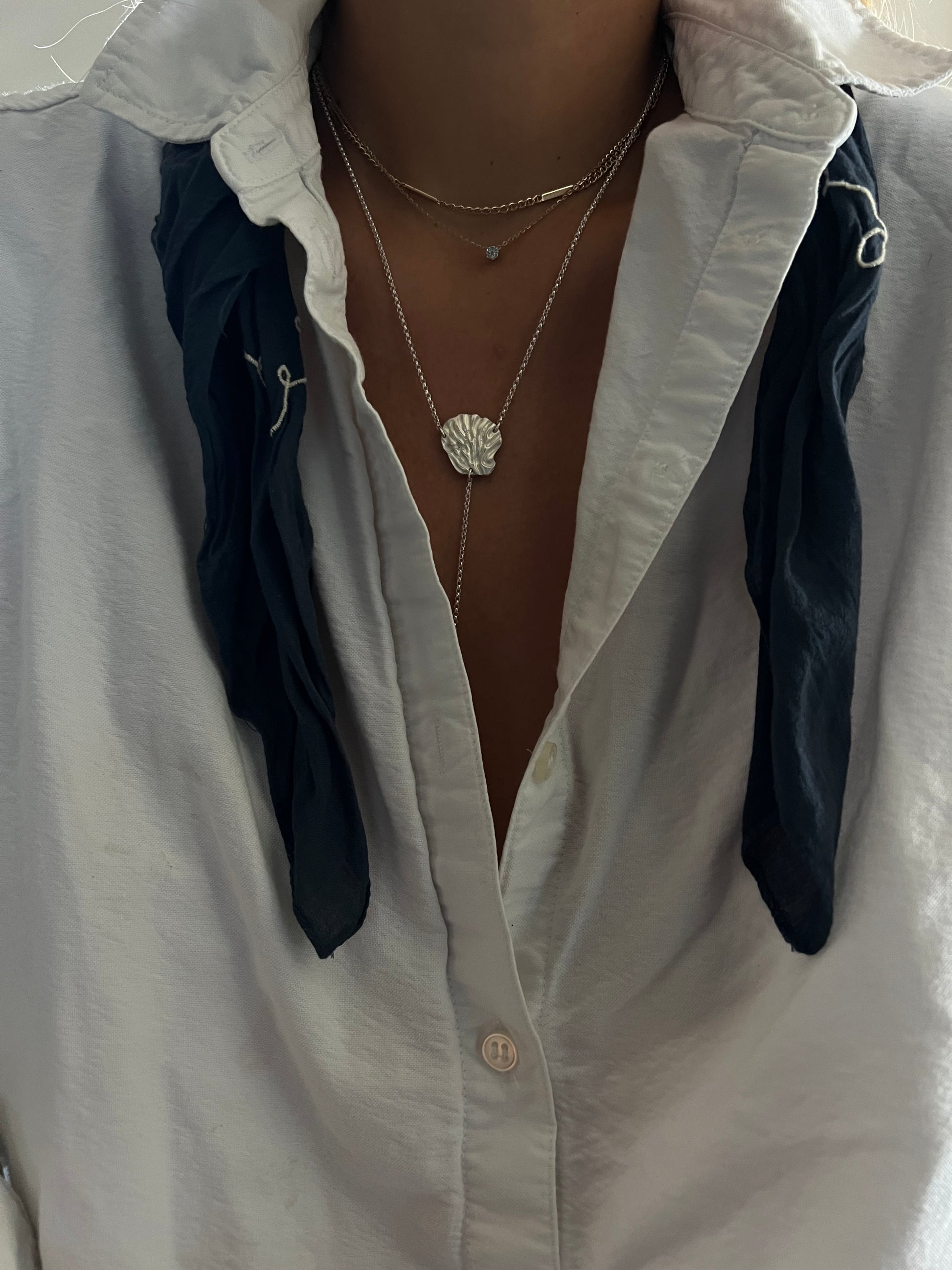 Achieve effortless elegance with the Nalu fossil Necklace. Iconic by Makmel. Crafted from 925 silver, this midi-sized necklace features a beautiful abstract shell pendant, perfect for any occasion. Add a touch of timeless beauty to your look with this charming piece.