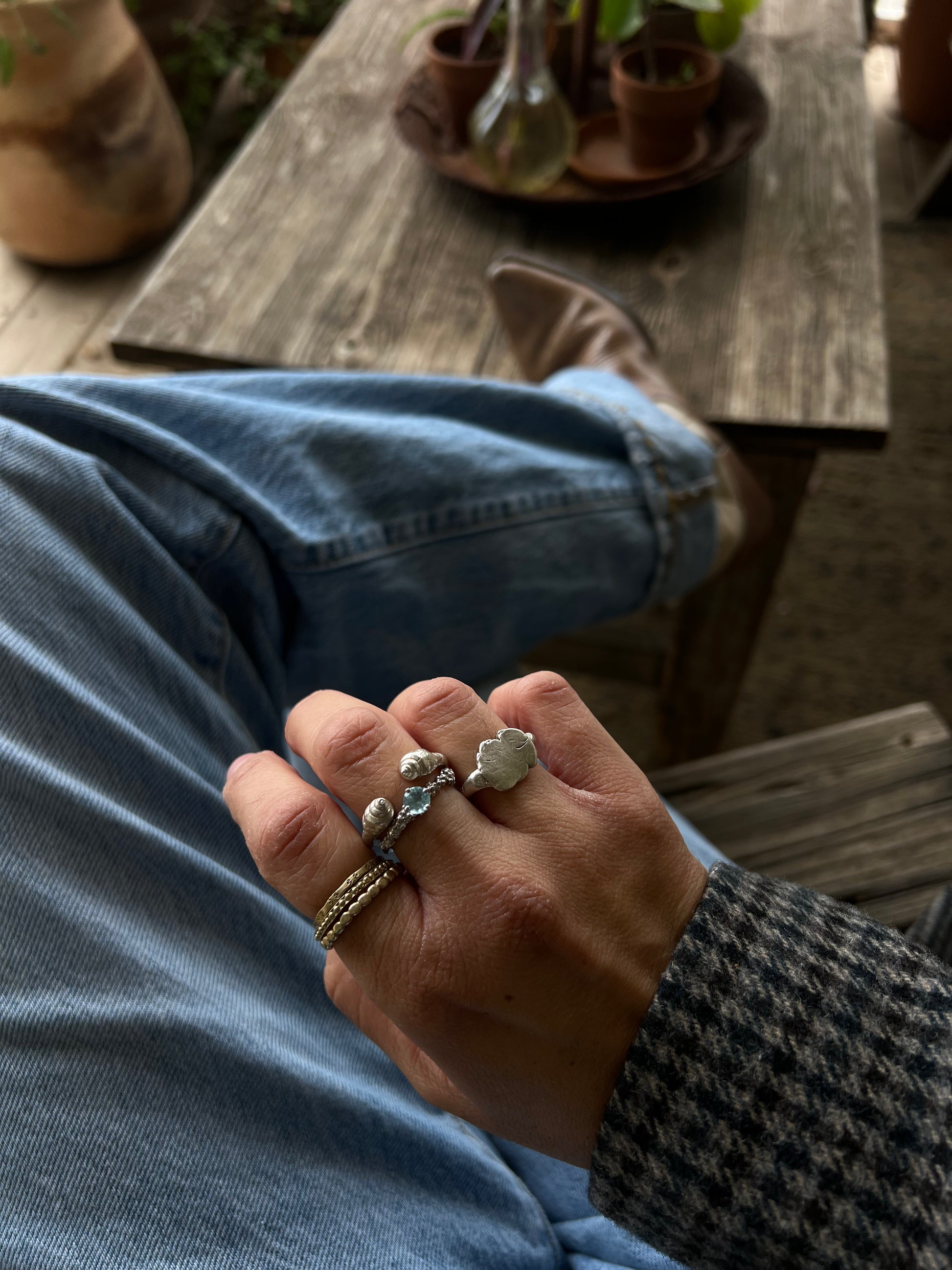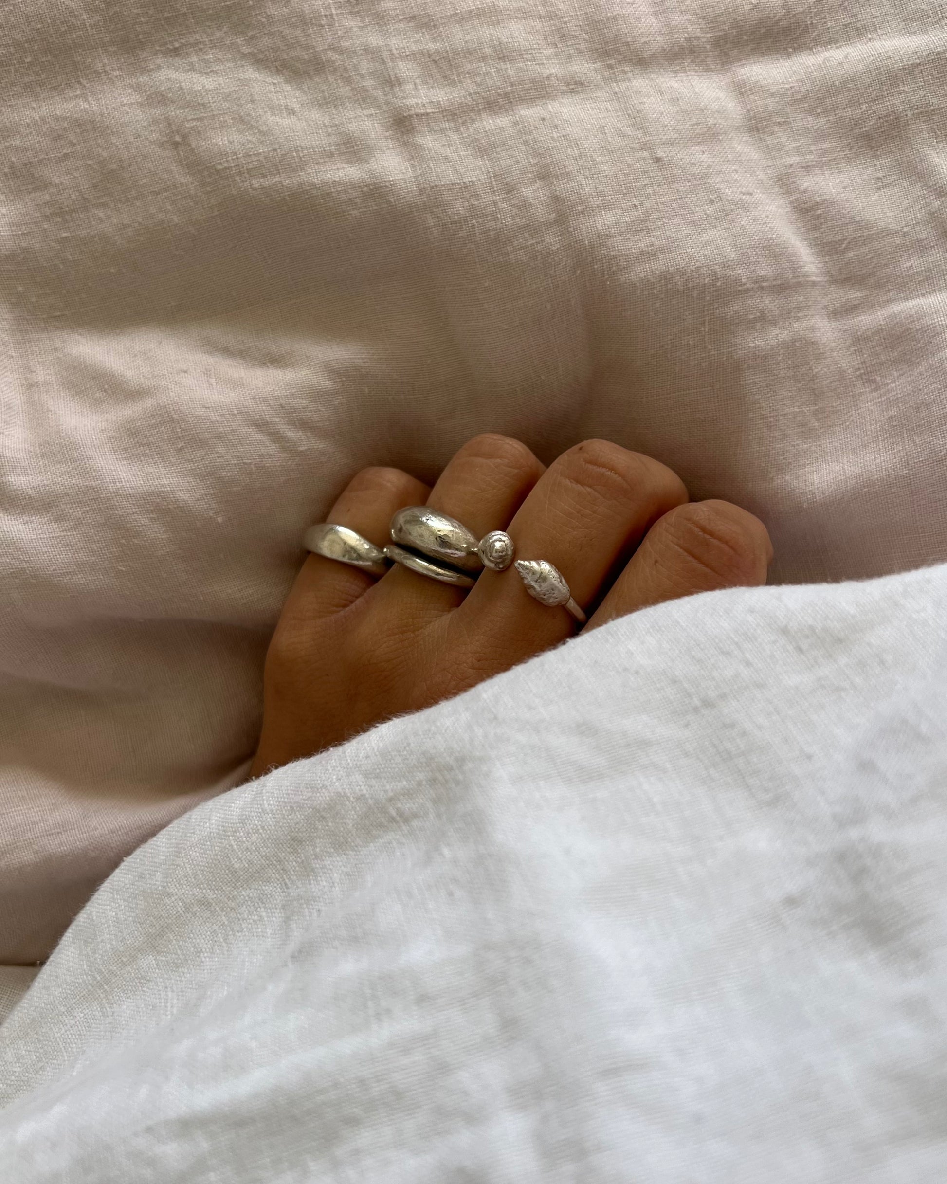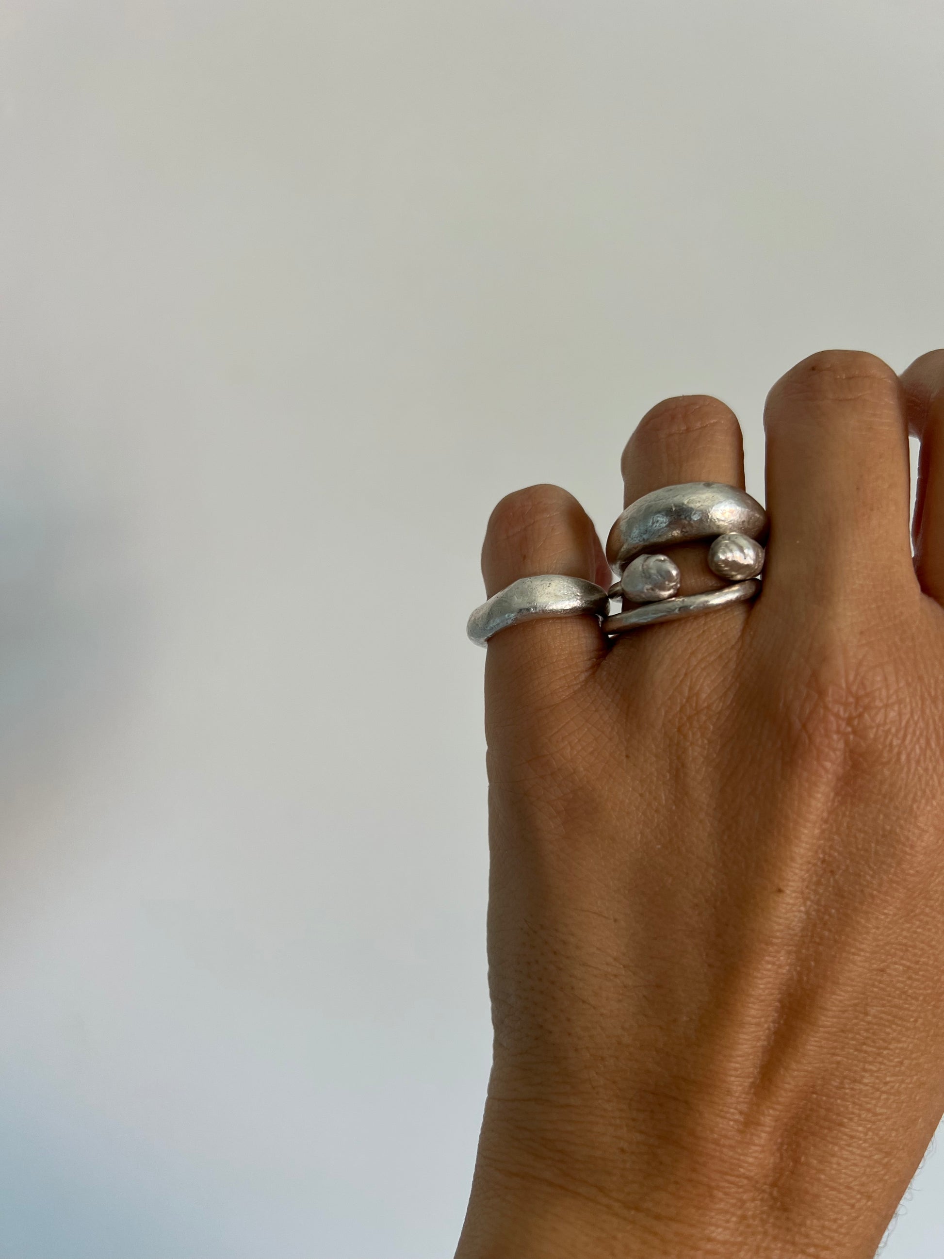 this ring is made to be layered with almost any ring due to her open parts that allowed you to have chunkier pieces or stone rings together with heart.
