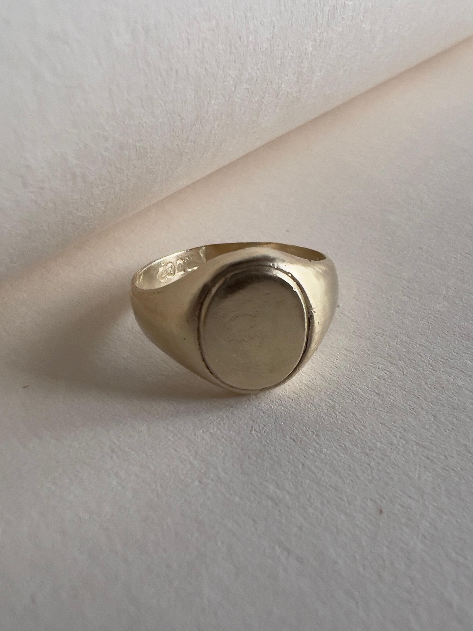 This Vintage Pinky signet ring exudes elegant vibes with its beautiful 14k gold craftsmanship. Perfect for adding a touch of vintage glamour to any outfit. Made to stand the test of time, this ring will make a timeless addition to your collection.