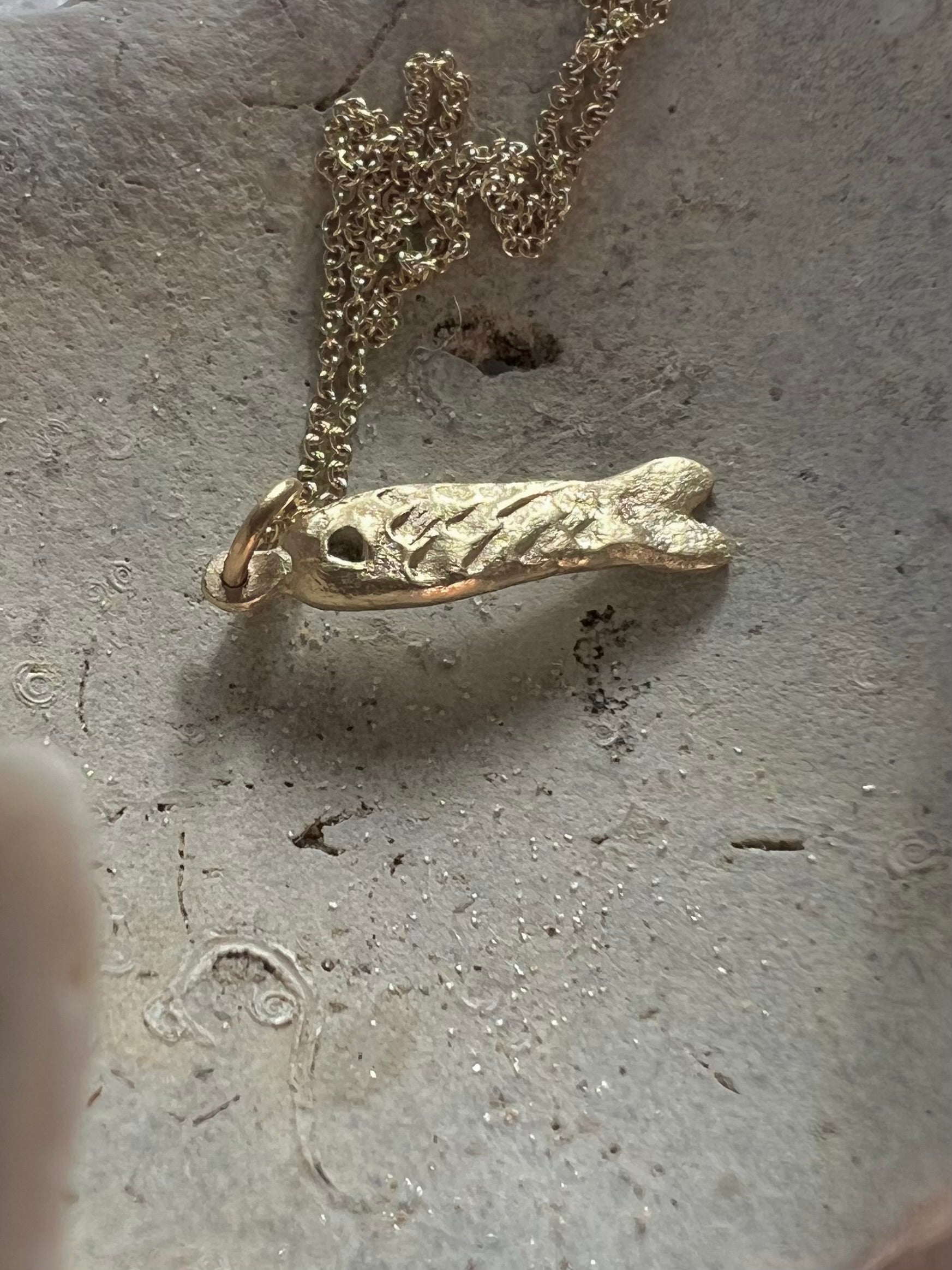 Bring blessings into your life with our Fish necklace. Handcrafted with solid 14k gold, its symbolic design showcases fertility, luck, and protection from the evil eye. Embrace the positive energy and good fortune this necklace represents.